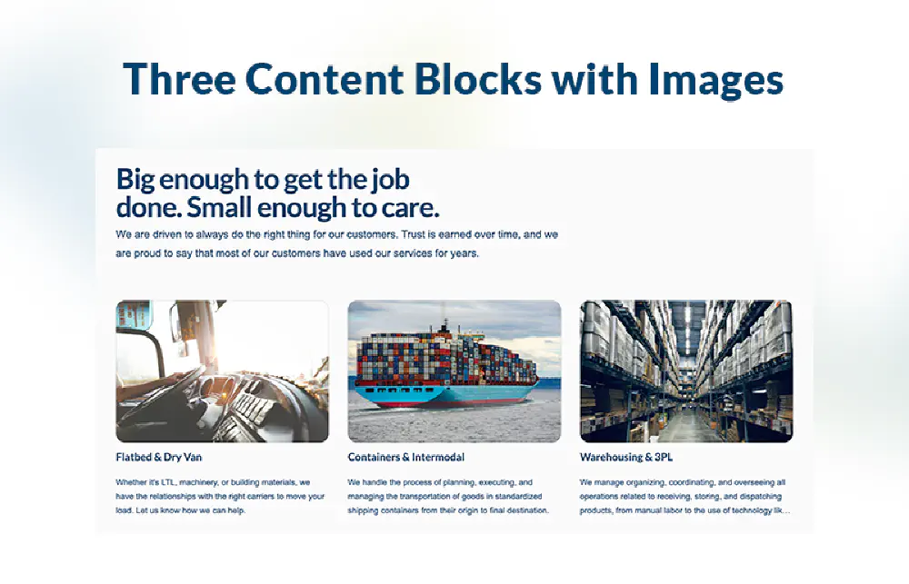 Present Your Key Logistics Capabilities with Clear, Image-Backed Content Blocks
